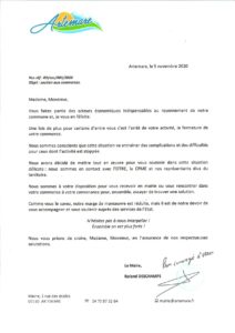Ce courrier de la municipalité montre le soutien de la commune auprès des acteurs économiques d'Artemare, tout en avouant que la « marge de manœuvre est réduite ». Ce courrier semble ne pouvoir apporter qu'un soutien moral...
